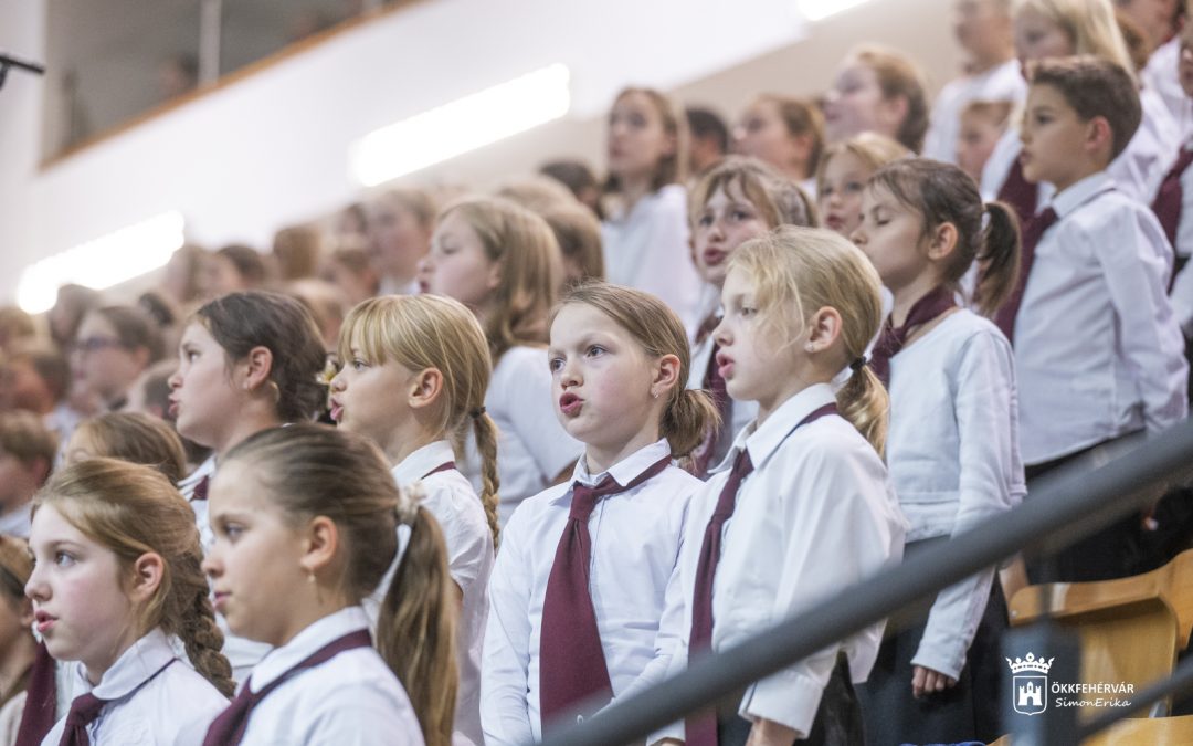 Székesfehérváron évtizedes hagyomány, hogy a zene világnapján a város zenei életének legkiválóbb képviselői: kórusok, zenekarok, hangszeres művészek, népzenészek együtt énekelnek, muzsikálnak, nem ritkán a közönséggel közösen. Nem volt ez másként idén sem, amikor immár tizenkilencedik alkalommal gyűlt össze a város zeneszerető közönsége október 1-jén az Alba Regia Sportcsarnokban. A hangversenyt az Alba Regia Szimfonikus Zenekar nyitotta meg, Rossini A sevillai borbély című operájának Nyitányával, Dobszay Péter vezényletével. A komolyzenét követően a gyermekek kértek figyelmet és Kodály Zoltán Angyalkertjével tánccal, énekkel idézték meg a gyermekkor játékosságát és szabadságát. A Kodály Zoltán Általános Iskola, Gimnázium és Alapfokú Művészeti Iskola gyermek tánccsoportja és az iskola 3. és 4. osztályosai alkotta kórus műsorát követően ünnepi beszéddel folytatódott az este.