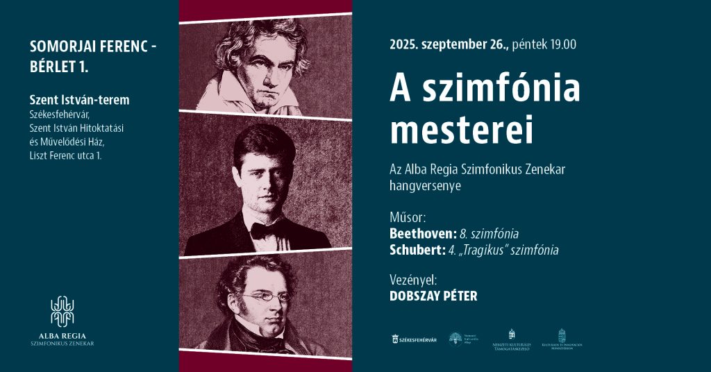 Az Alba Regia Szimfonikus Zenekar idei Somorjai-bérletének nyitóhangversenye a bécsi klasszika két nagy mesterének remekbe szabott szimfóniájával várja a zenebarátokat. Elsőként Beethoven 1812 őszén készült, két évvel később bemutatott 8. szimfóniája csendül fel, amely kimeríthetetlen ötletességével, színes hangszerelésével, és nem utolsósorban pazar humorával ma is ellenállhatatlan hatást tesz hallgatóira. Dobszay Péter, az ARSO művészeti vezetője és a koncert karmestere szerint Beethoventől szokatlanul felszabadult, invenciózus darabot hallhatnak majd: “A 8. szimfónia a szerző teplici nyaralása közben készült el. Mindazok az energiák, mindaz a küzdés még ebben a legpozitívabb hangvételű szimfóniájában is mélyen ott van, ami olyan jellemző a szerzőre. Schubertnél pedig – a későbbi műveihez képest – talán még intenzívebben érezhető a Beethoven-hatás. Az akkor 19 éves szerzőnek a lelkivilága, az érdeklődése, a fájdalmai nagyon intenzíven ott vannak ebben a zenei anyagban.”