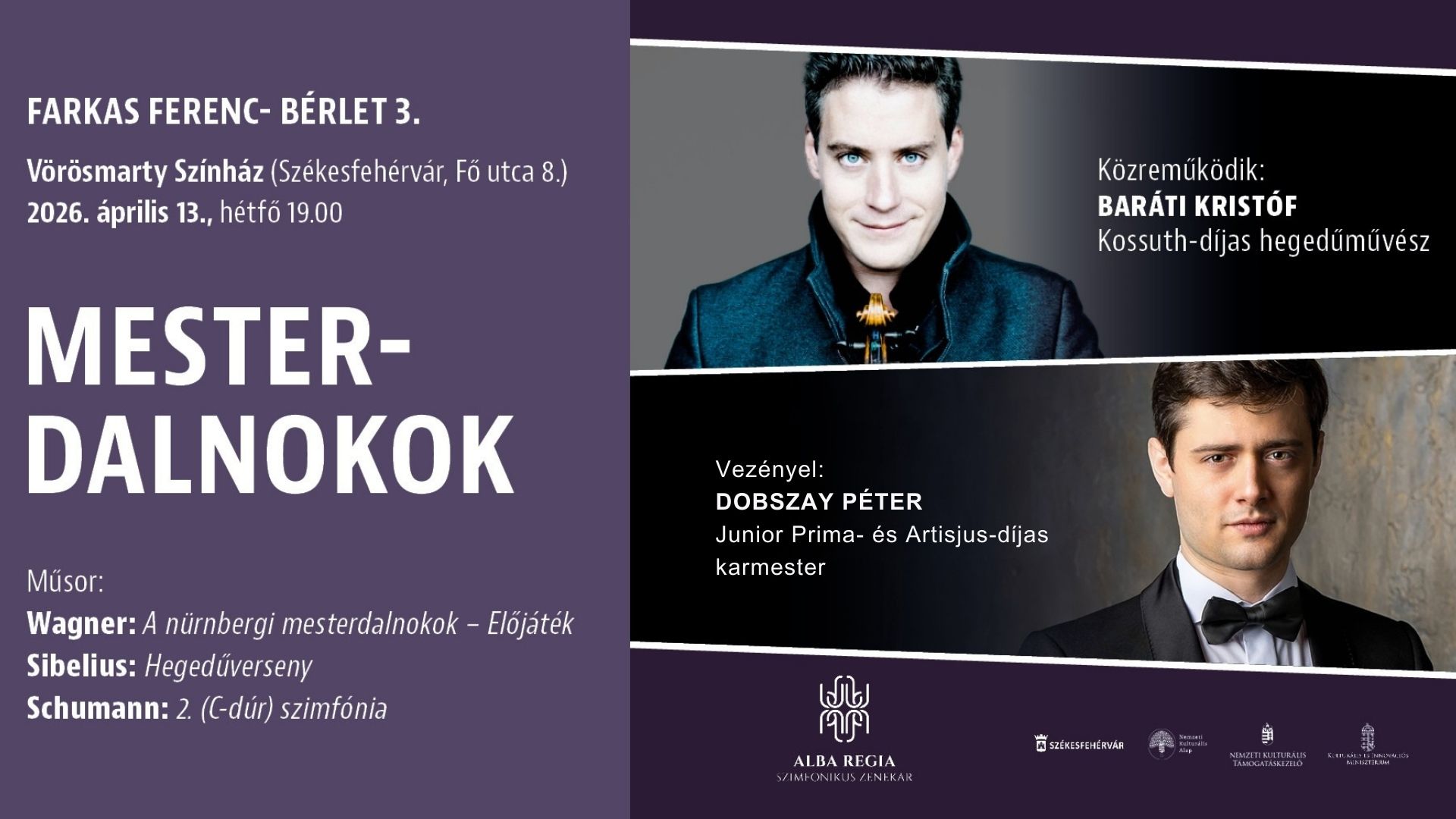 Jegyek: 3.600,- Bérlet: 12.900,- Szent István-terem, SzékesfehérvárJegy Részletek